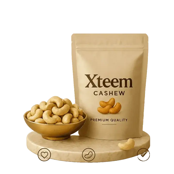 We offer both bulk supply and retail-ready branded packaging under the Xteem Cashew brand — a proud subsidiary of Esteema Diamonds Global Investment Ltd.