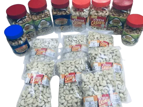 Xteem Cashew offers four delicious and high-quality variants, each crafted to satisfy different taste preferences. Our cashew nuts are carefully sourced, processed, and packaged to meet local and international standards. We offer semi processed cashew nuts (white whole cashew kernels) and Roasted cashew kernels (salted, chilli and roasted plain).